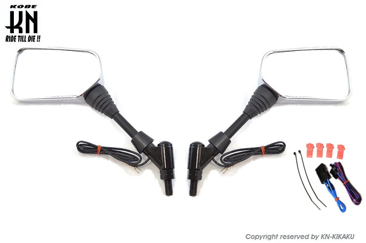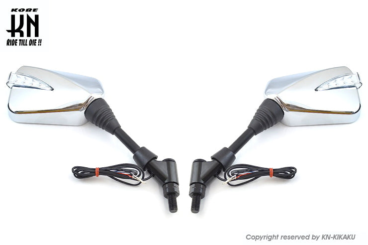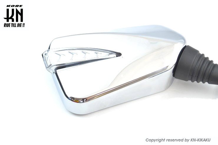 シーケンシャルウインカー付バックミラー2【デイライトホワイト/左10mm正,右10mm逆ネジ】メッキ