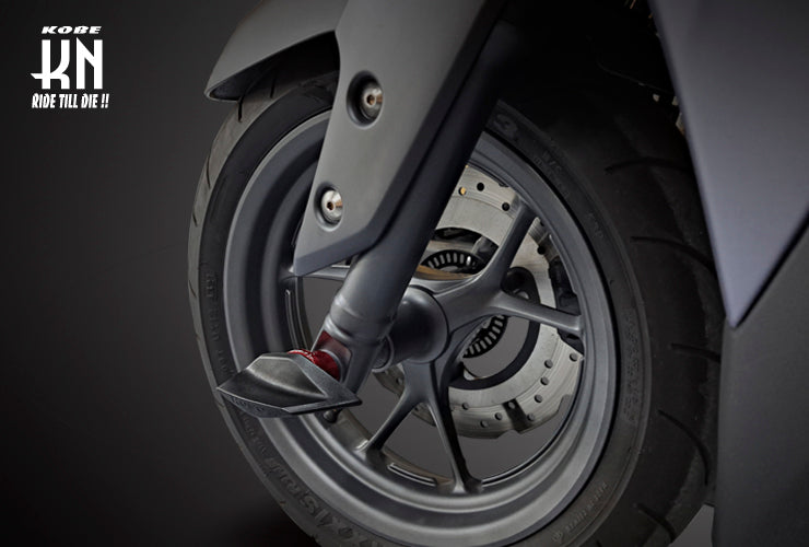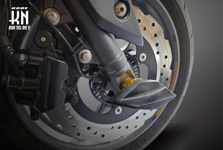 ■転倒時にフロントフォークやキャリパー等に直接ダメージを受けるのを防ぐ為のパーツです。